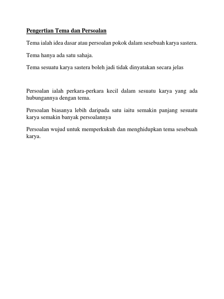 Pengertian Tema Dan Persoalan Pdf